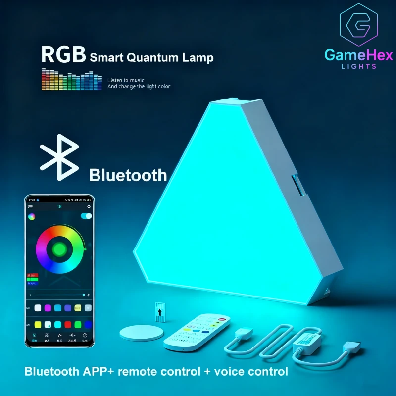 Elevate any space with Gaming Hexagon Lights WiFi RGB Triangle LED Wall Panels, a next-generation modular lighting system designed for gamers, streamers, and modern home décor enthusiasts. With advanced app and remote control functionality, you can switch seamlessly between millions of colors, adjust brightness levels, and create dynamic lighting effects to perfectly match your mood, activity, or occasion. Whether you want calm ambient lighting for relaxation or vibrant, energy-filled colors for gaming, these smart LED panels deliver complete control and flexibility.
